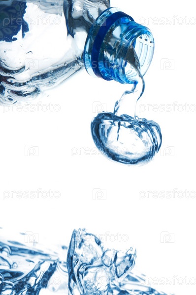 Вода льется из пластиковой бутылки