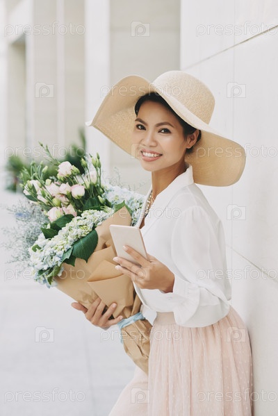 Красивая женщина с букетом