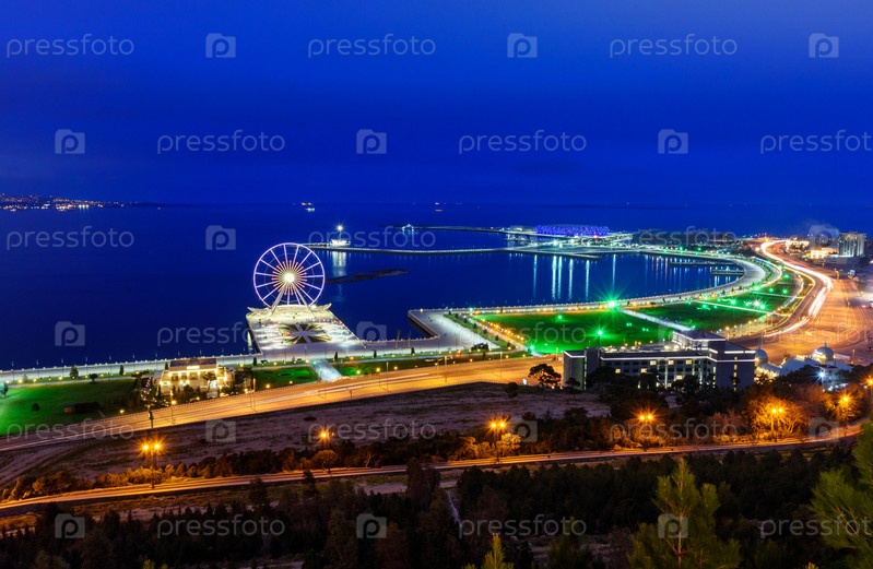 Ночной вид на город и колесо обозрения. Баку, Азербайджан