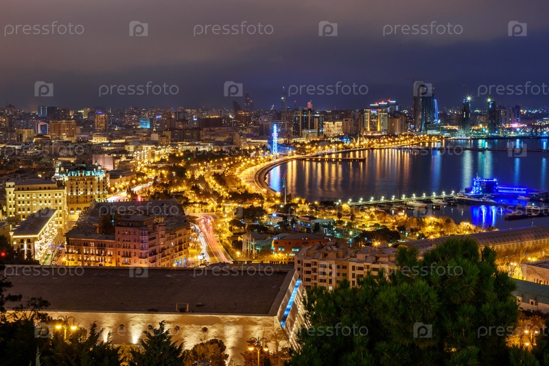 Ночной вид на город Баку. Азербайджан