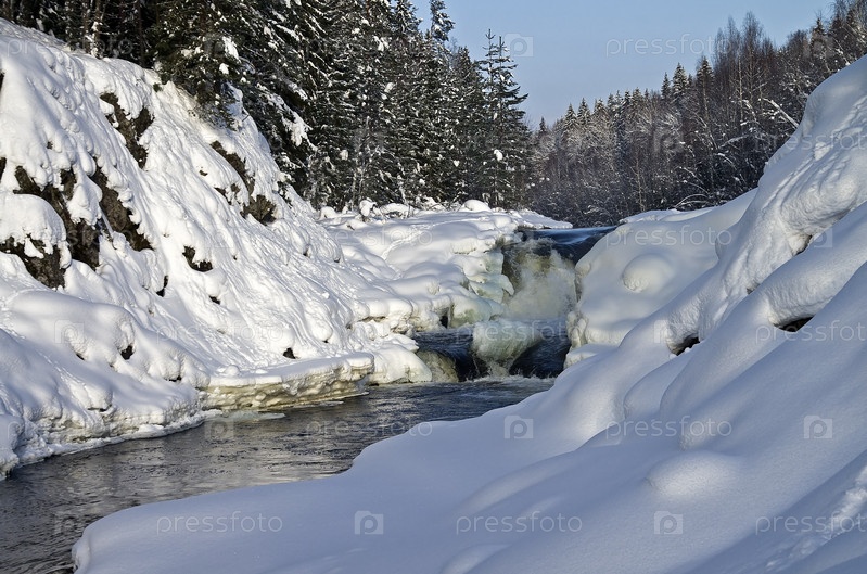 Водопад Кивач зимой. Карелия