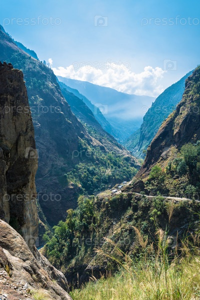 Горный пейзаж с глубоким ущельем в Гималаях