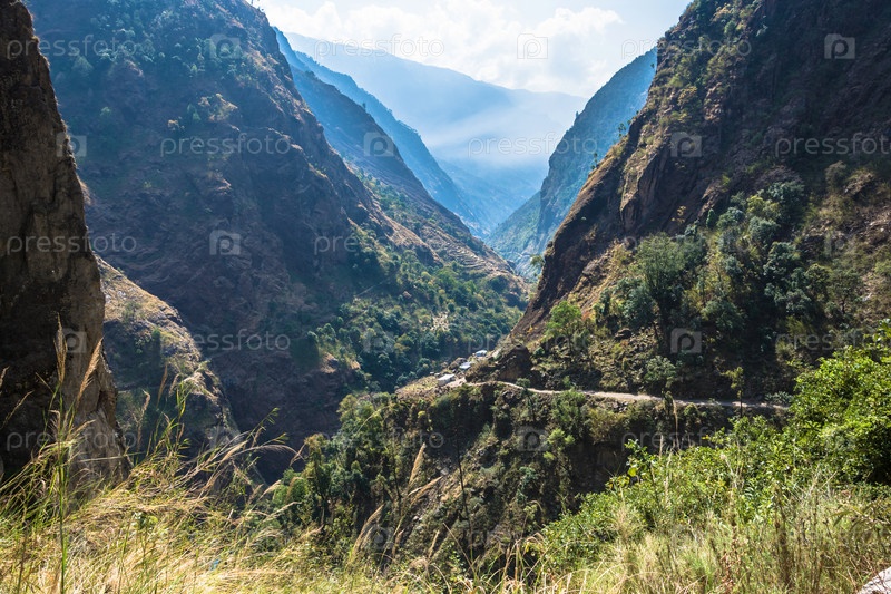 Горный пейзаж с глубоким ущельем в Гималаях