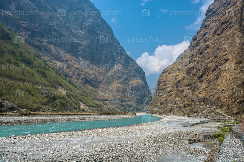 Горная река в глубоком ущелье в Гималаях