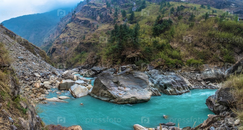 Панорама горной реки в Непале