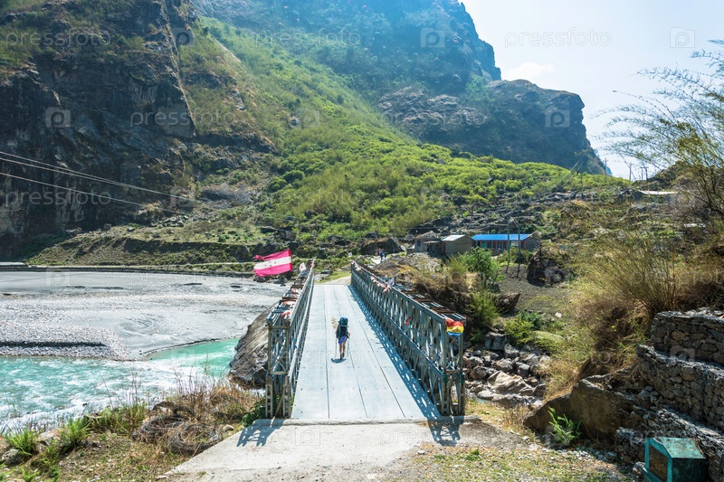 Мост через горную реку в Непале
