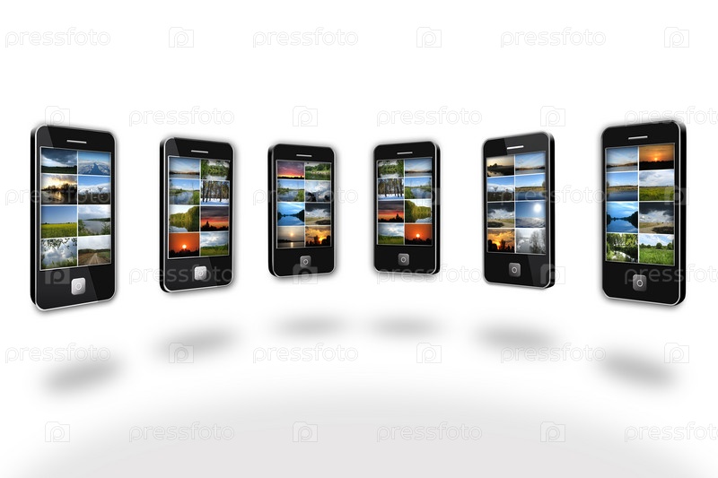 Современные мобильные телефоны с различными изображениями