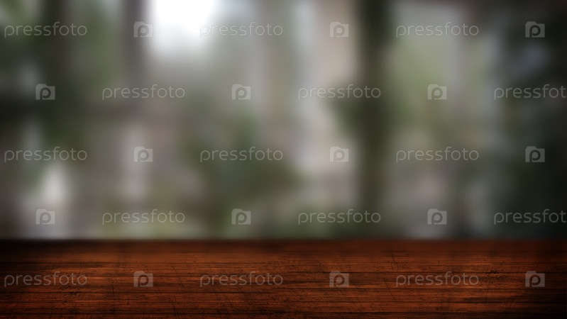 Деревянная столешница на фоне размытого окна