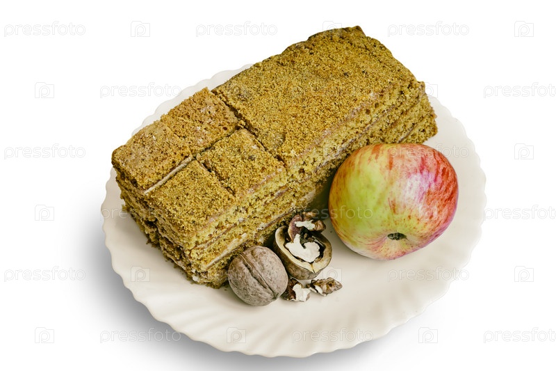 Торт, яблоко и грецкие орехи