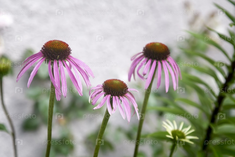 Эхинацея цветы на клумбе в саду
