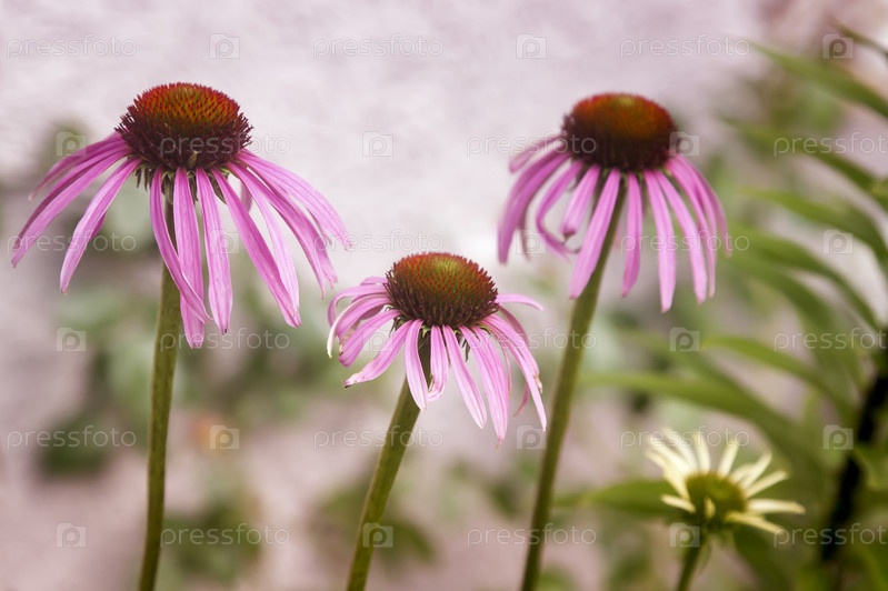 Эхинацея цветы на клумбе в саду