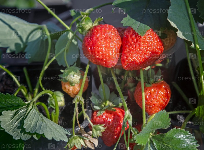 Спелые ягоды клубники в саду