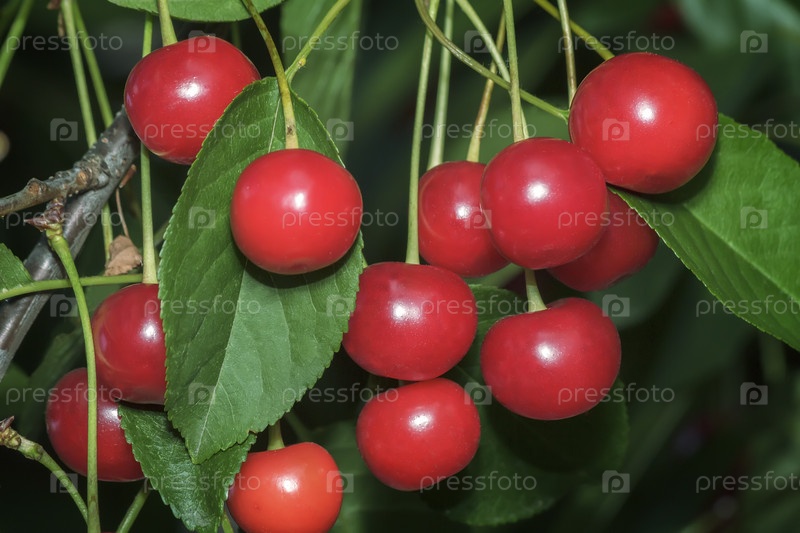Спелые вишни на ветке дерева