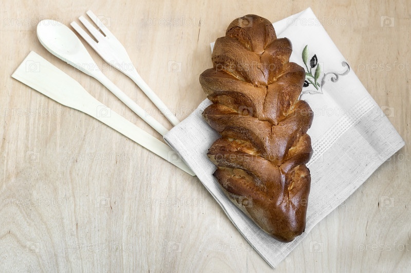 Аппетитный сладкий белый хлеб на салфетке