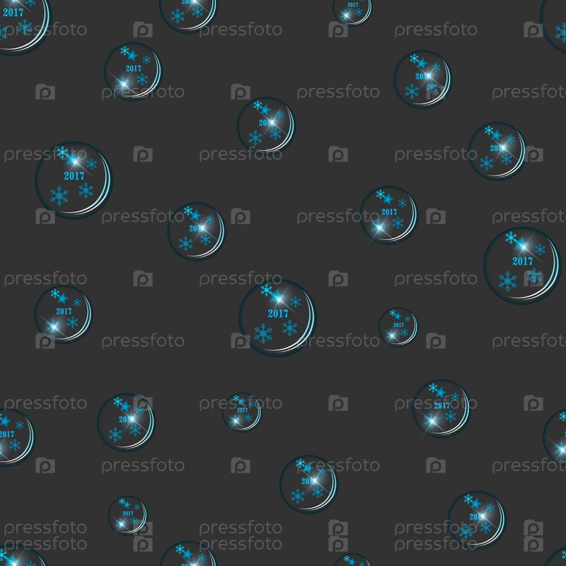 Акварельный бесшовный рисунок с рождественскими шарами и снежинками на темном фоне