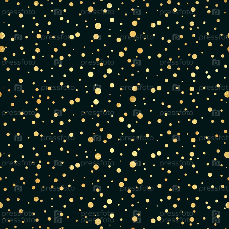 Золотой круг бесшовный рисунок. Абстрактный золотой геометрический современный фон.Золотые точки. Векторная иллюстрация. Блестящий фонарь. Текстура золотой фольги. Стиль арт-деко. Точки полки, конфетти