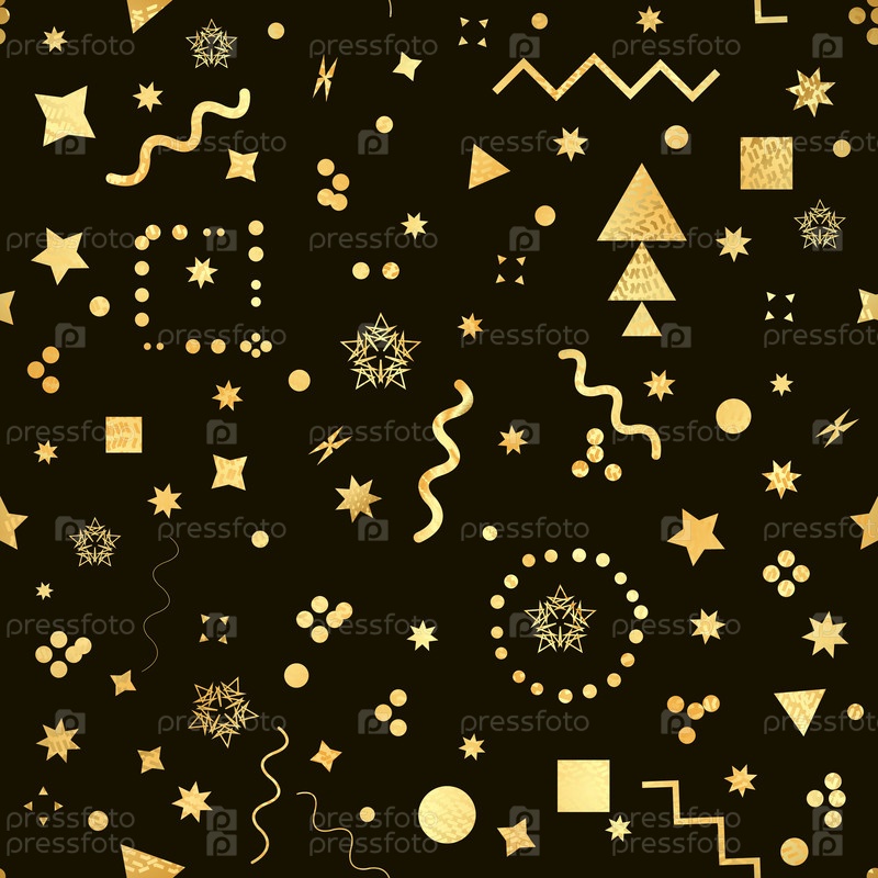 Модные геометрические элементы мемфисская карточка. Бесшовный шаблон Memphis для тканей и открыток. Хипстерский плакат, золотой цвет фона. Векторная иллюстрация