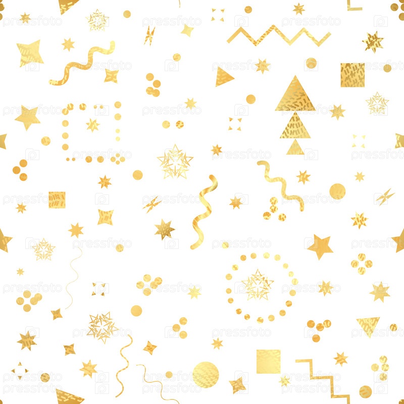 Модные геометрические элементы мемфисская карточка. Бесшовный шаблон Memphis для тканей и открыток. Хипстерский плакат, золотой цвет фона. Блестящий фон. Векторная иллюстрация
