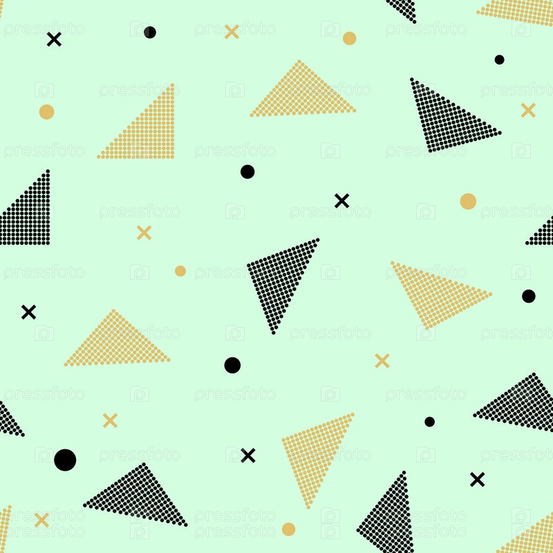 Модные геометрические элементы мемфисская карточка. Бесшовный шаблон Memphis для тканей и открыток. Хипстерский плакат, черно-золотой цвет фона. Векторная иллюстрация