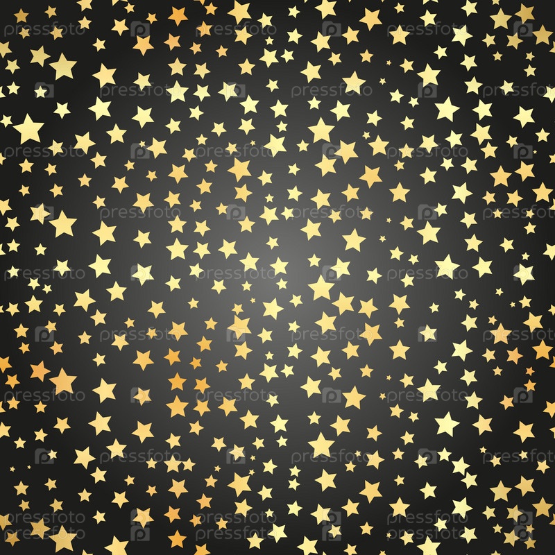 Золотая звезда гладкий узор. Абстрактный черный современный гладкий узор с золотыми звёздами конфетти. Векторная иллюстрация. Блестящий фон. Текстура золотой фольги