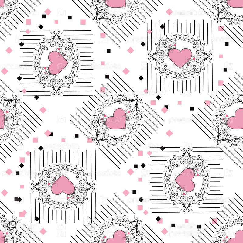 Рисование векторной графики с цветочным узором с сердцами. Бесшовный фон. Цветочный цвет натуральный дизайн. Графический, эскизный рисунок. Роза. Сердца