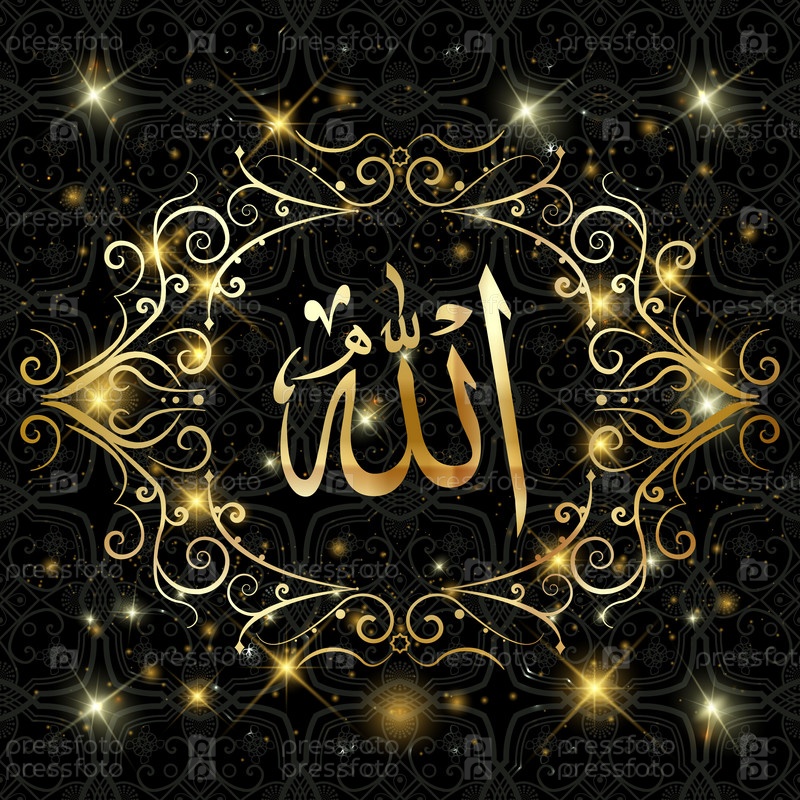 Аллах перевод Во имя Бога . Темный фон. Геометрический исламский мотив или орнамент
