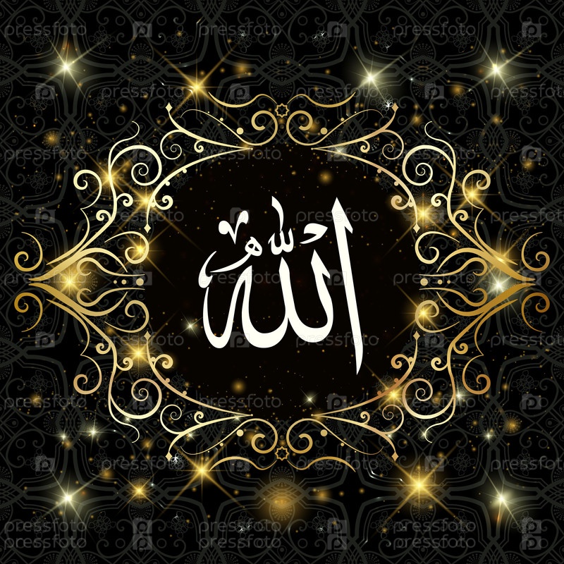 Аллах перевод Во имя Бога . Темный фон. Геометрический исламский мотив или орнамент