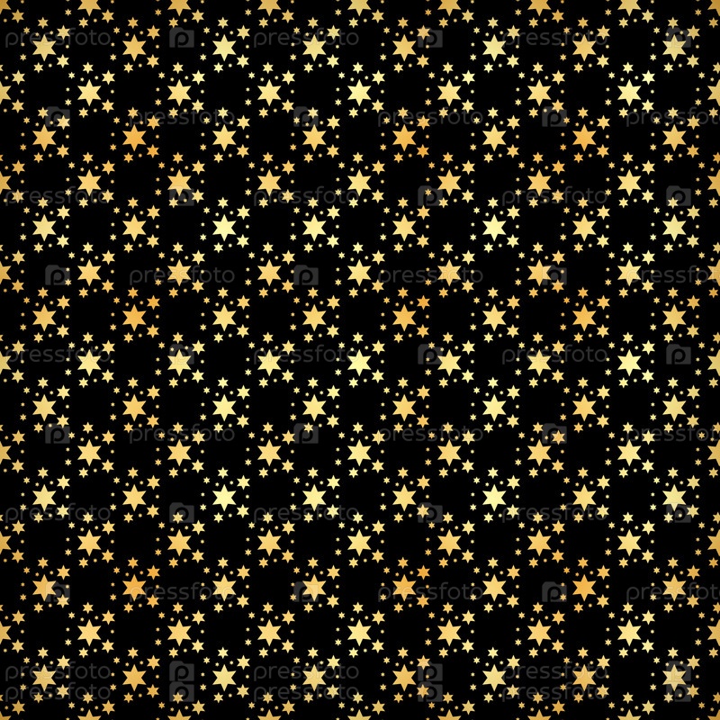 Золотая звезда гладкий узор. Абстрактный черный современный гладкий узор с золотыми звёздами конфетти. Векторная иллюстрация. Блестящий фон. Текстура золотой фольги