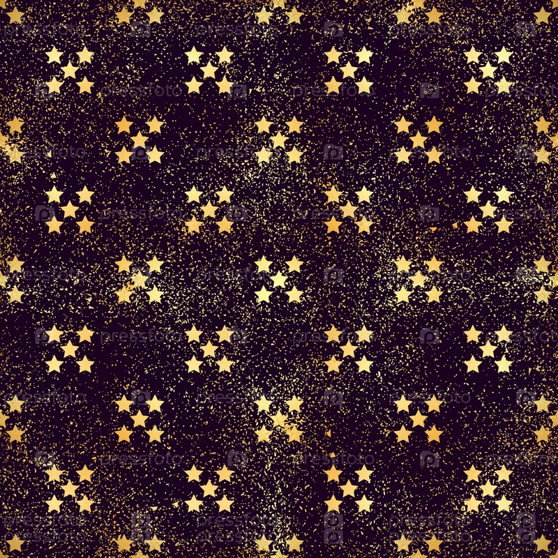 Светящийся золотой звездочек гладкий узор. Абстрактный черный современный гладкий узор с золотыми звездами конфетти. Блестящий фон. Текстура золотой фольги