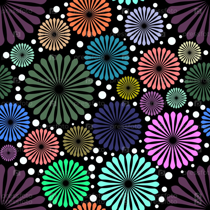 Абстрактные цветные цветы на черном фоне в стиле арт-деко