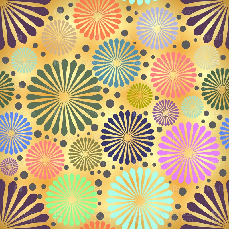 Абстрактные цветные цветы на золотом фоне. абстрактная круглая геометрическая форма