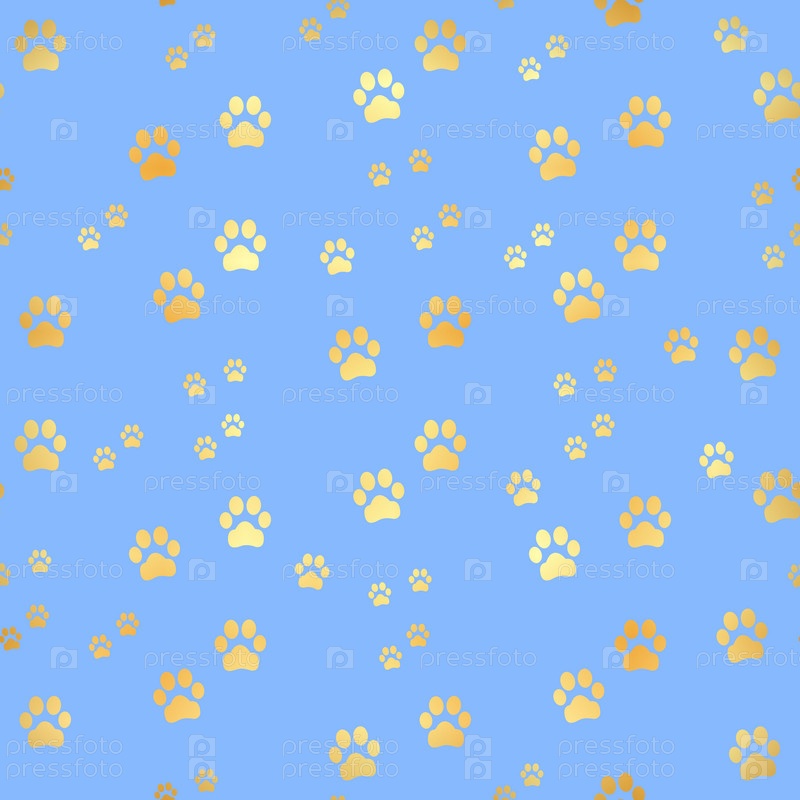 Gold Paw print seamless pattern. Бесшовный рисунок золотых следов животных. Печать собачьих лап бесшовный рисунок на золотом фоне