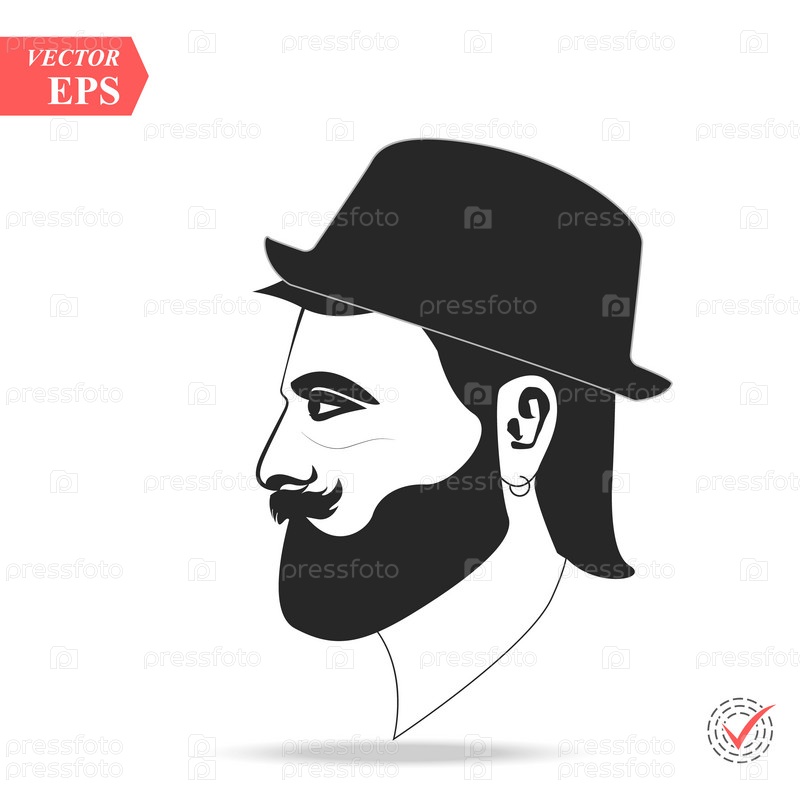 Векторный профиль печального бородатого мужчины, носящего шляпу. иллюстрация