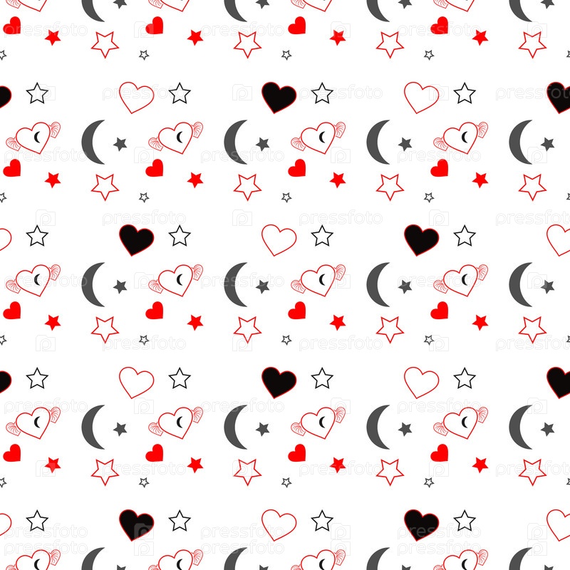 Бесшовный узор с красными сердцами и черными звездами на белом фоне. векторная иллюстрация