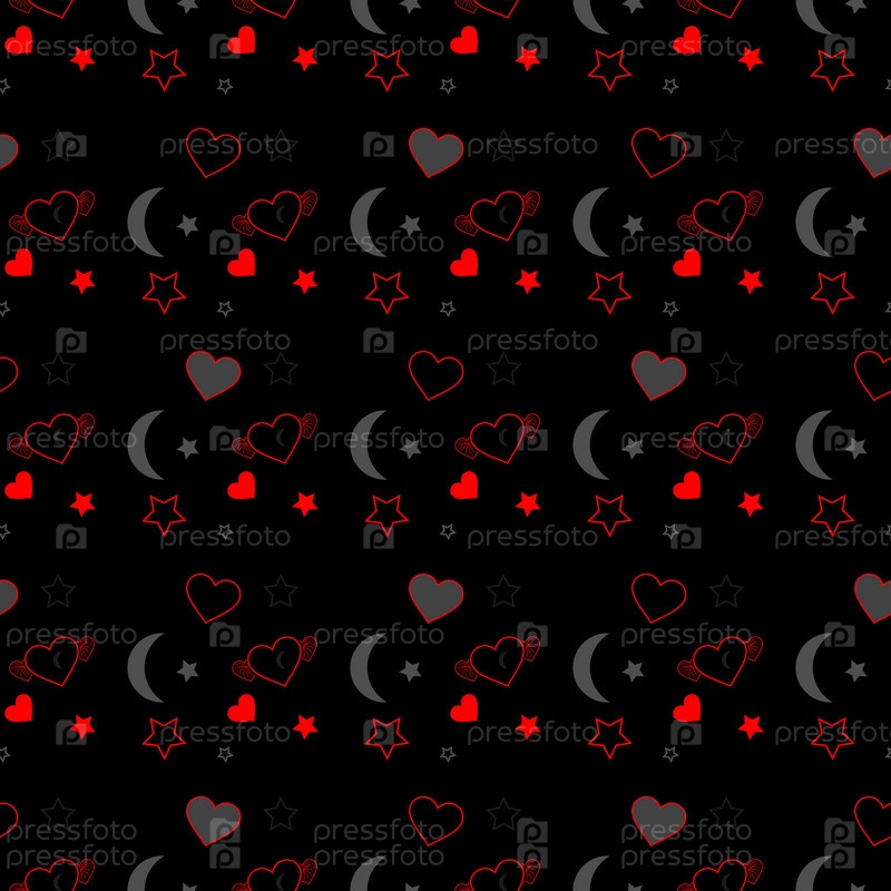 Бесшовный рисунок с красными сердцами и черными звездами на чёрном фоне. векторная иллюстрация eps