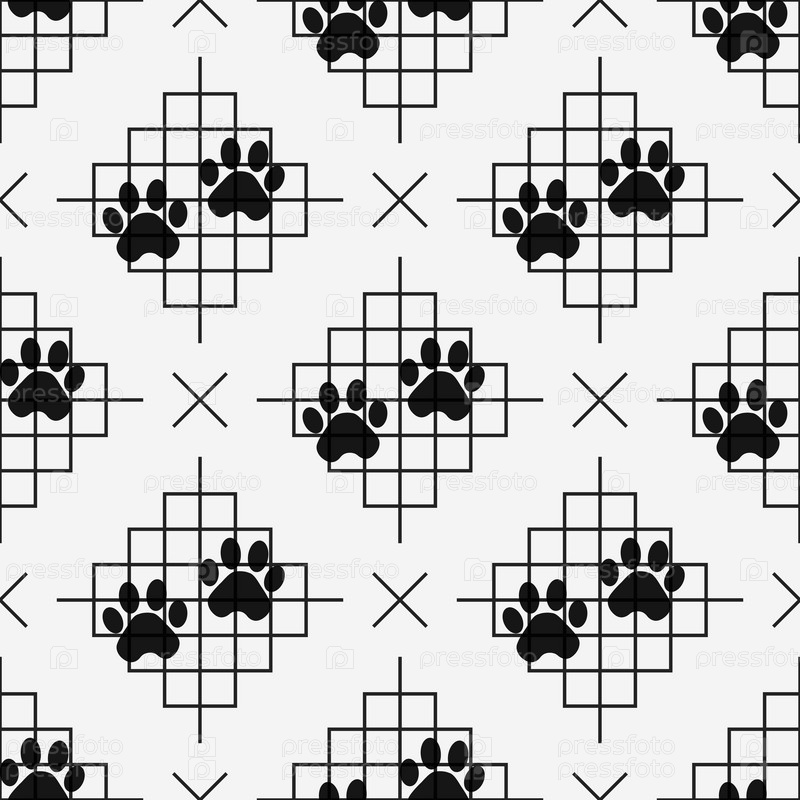 Печать собачьей лапы бесшовный узор с линиями
