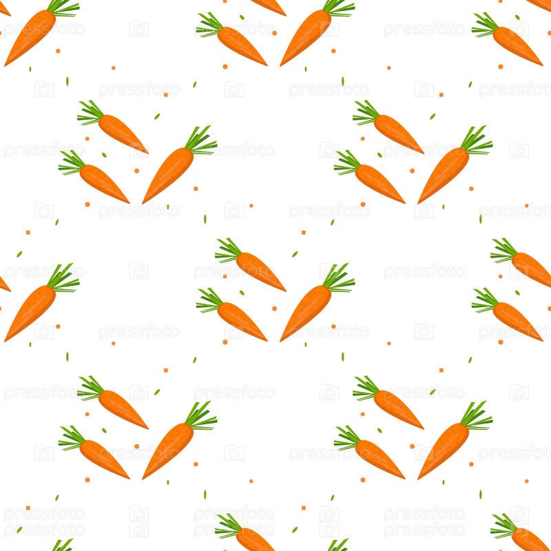 Реалистичный Детальный 3d Свежие сырые морковь Бесшовный рисунок Фон на белом Концепция здорового питания Витамины овощи. векторная иллюстрация Оранжевой Моркови с листьем