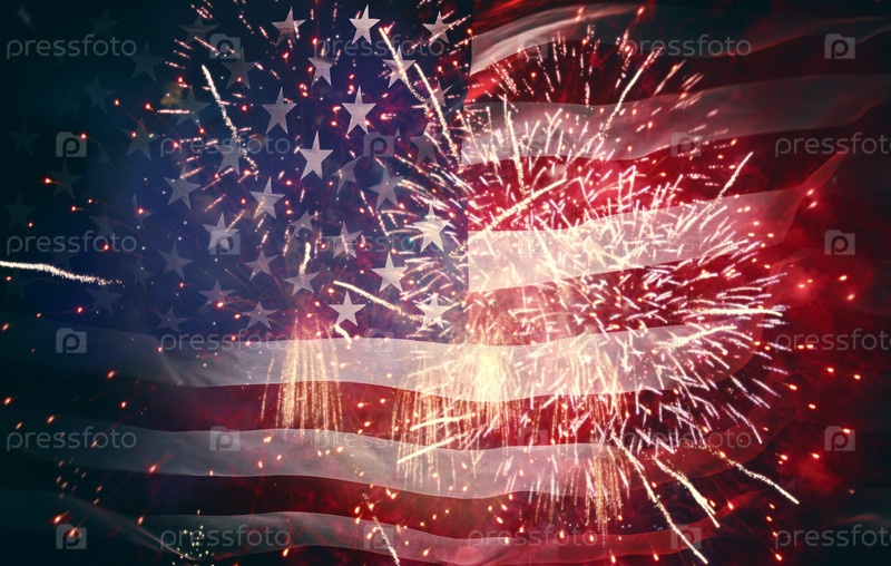 Американский флаг на фоне фейерверка