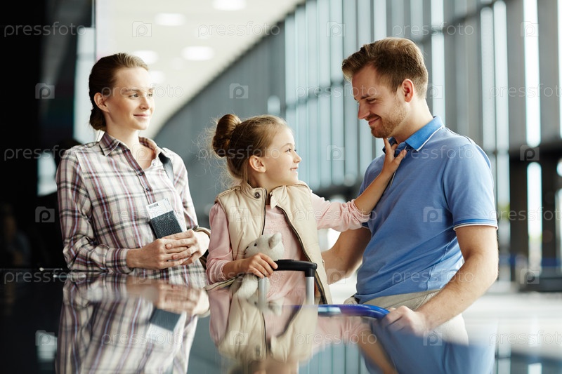 Семья на стойке регистрации