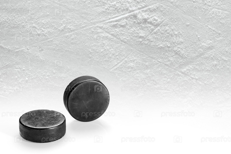 Пара хоккейных шайб на льду