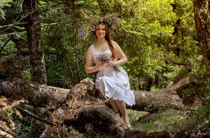 Молодая девушка с венком из полевых цветов