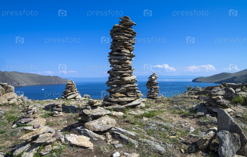 Буддийские традиционные каменные пирамиды на берегу озера Байкал