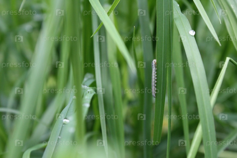 Крохотная гусеница в траве
