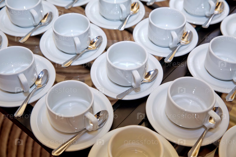 Чашки на белых блюдцах