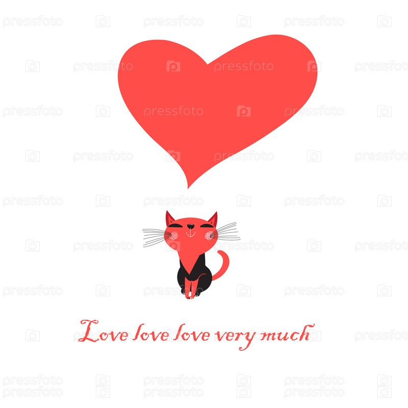 Открытка с кошки и сердцем