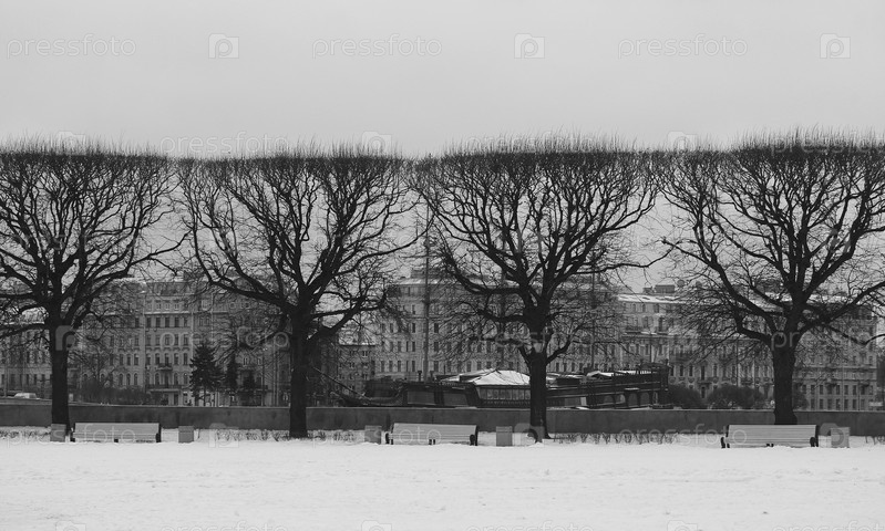 Черные деревья зимой в городе