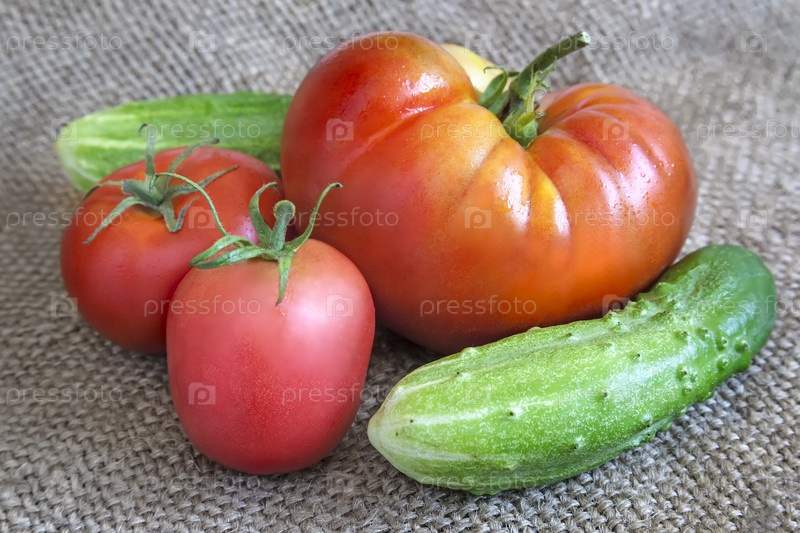 Помидоры и огурцы на столе