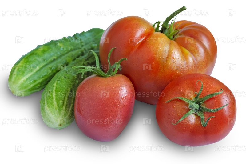 Помидоры с огурцами на белом фоне