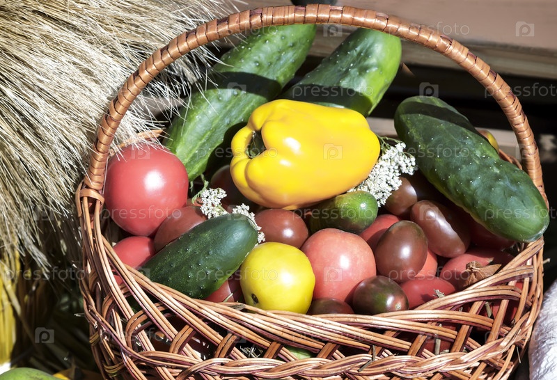 Плетеная корзина с овощами