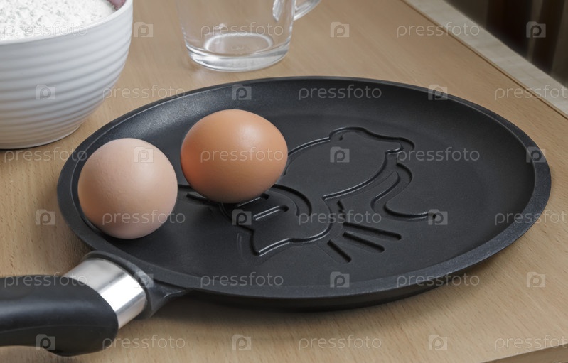 Чугунная сковорода с керамическим покрытием и яйцами